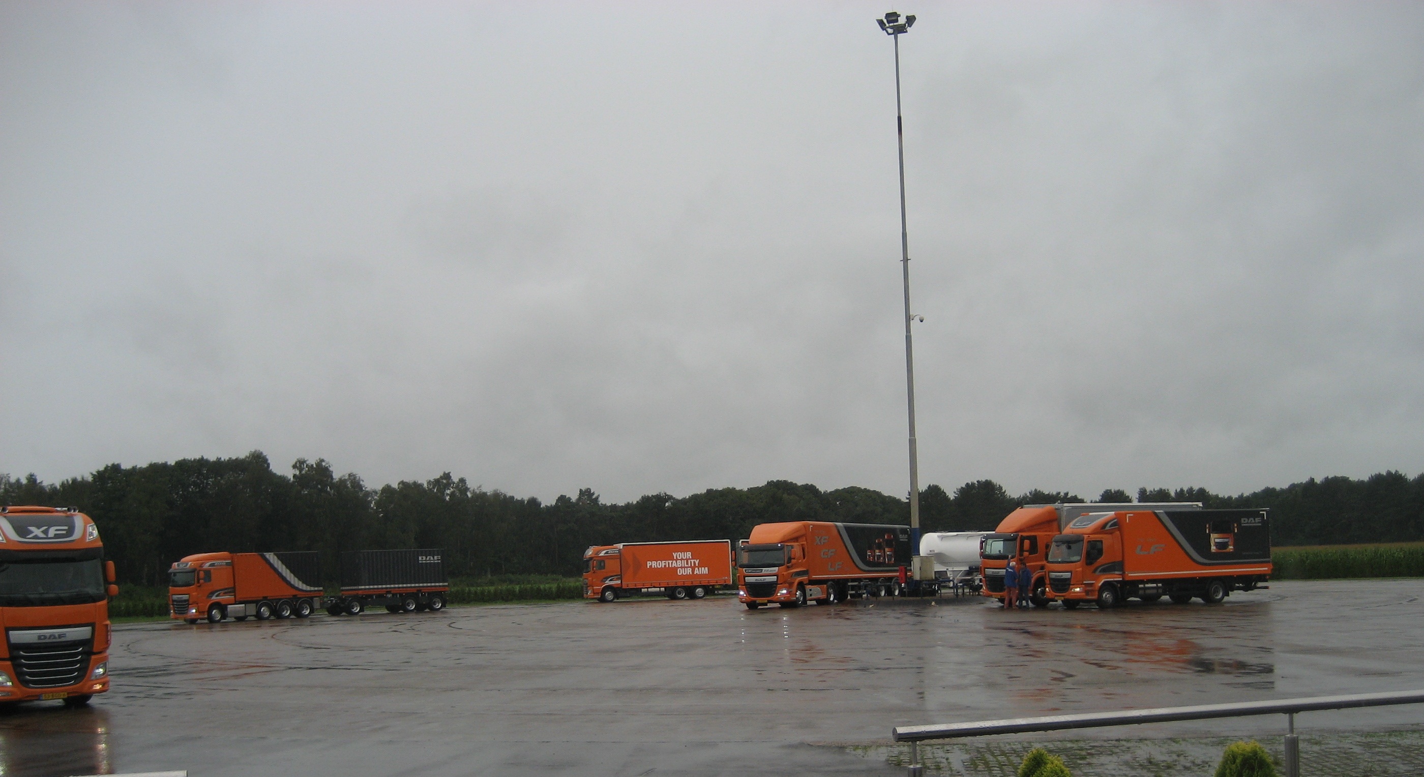 Una vez finalizada la presentación, todo el grupo se trasladó a la pista de pruebas de Sint-Oedenrode, a unos 20 kilómetros de Eindhoven. Allí toda la gama de camiones DAF se encontraba a disposición de nuestros clientes para que fuesen rodados por todo el circuito.